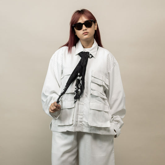 NOMIZU SHIRT STRIPES WHITE