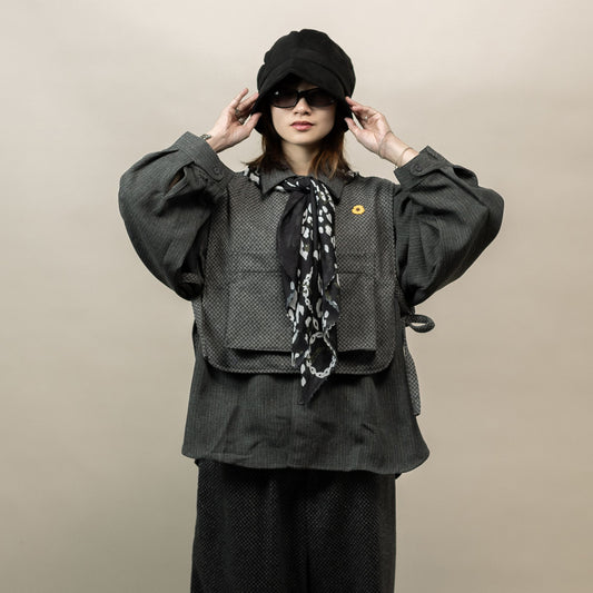 FOSHO VEST SEMI WOOL PATTERN GRAY