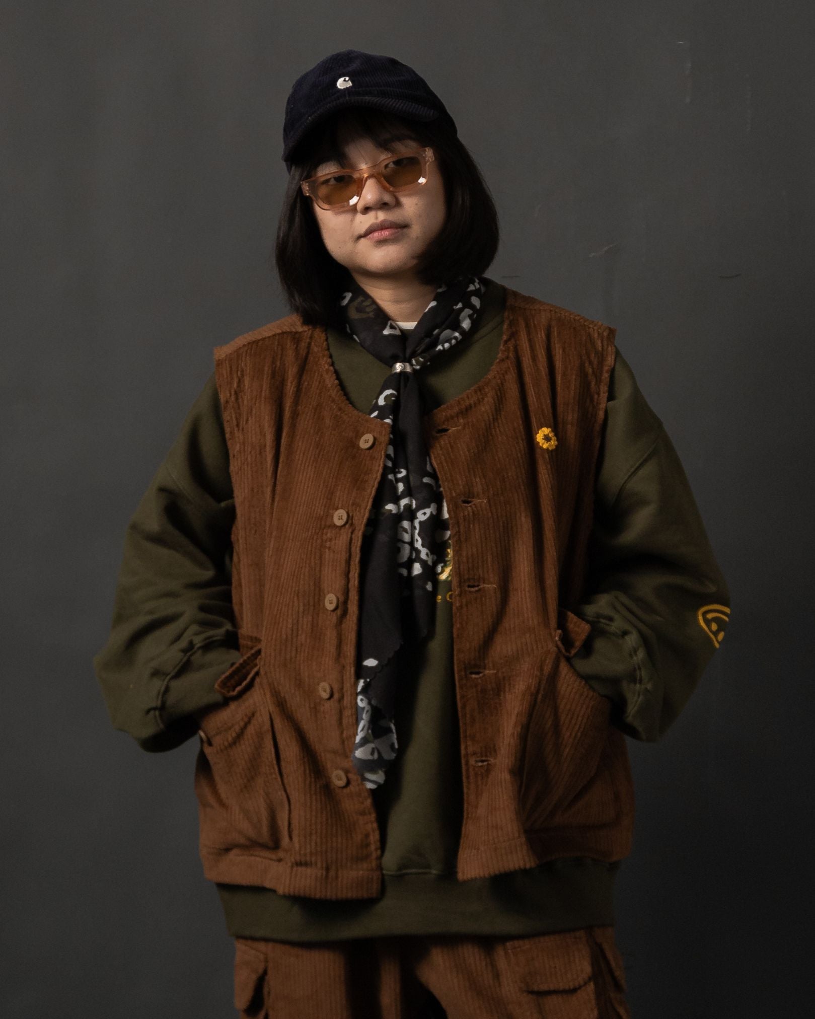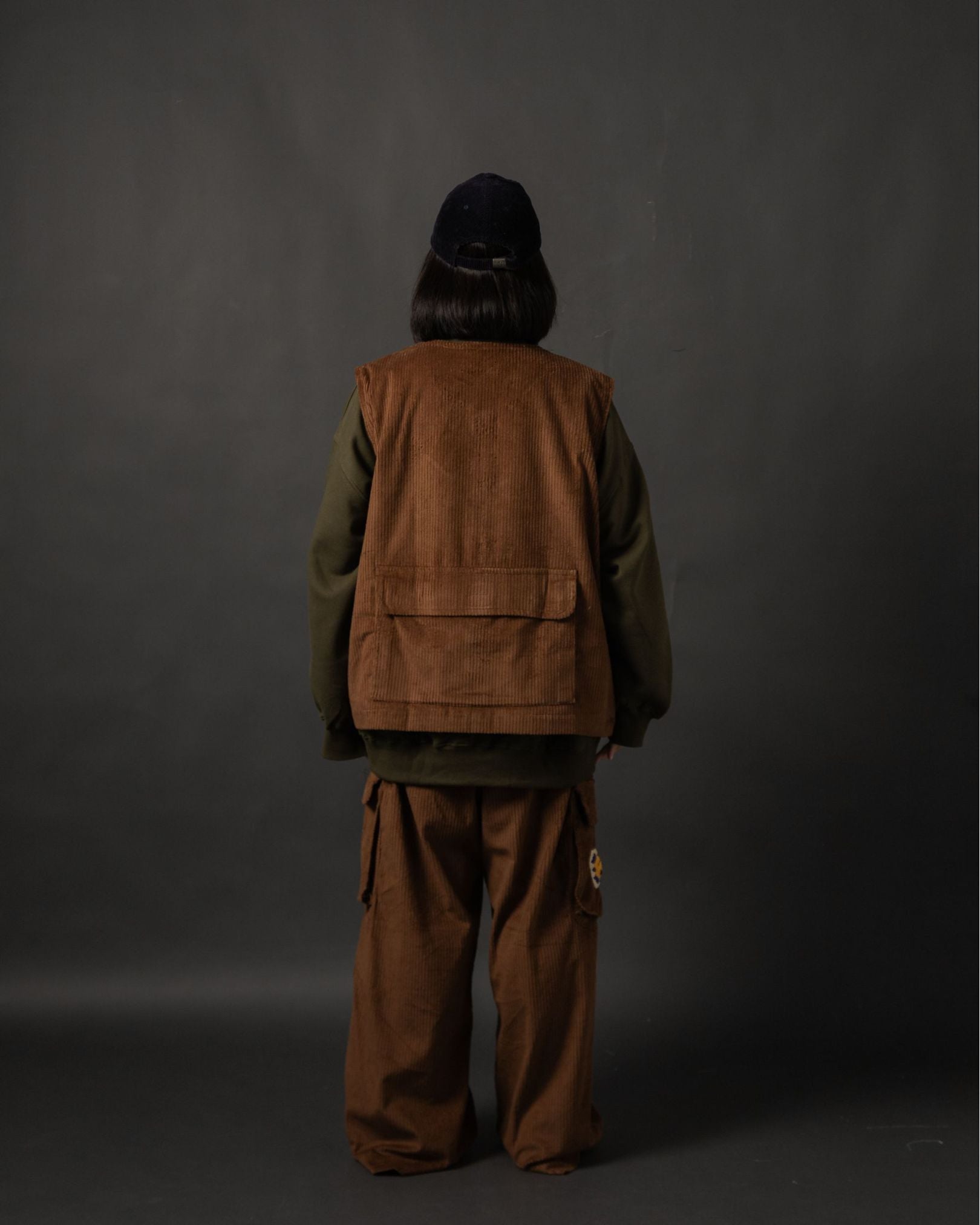 The Demusan Vest Corduroy Brown TNOI is a laid-back yet refined layering piece designed for everyday rotation, perfect for cooler days and quiet casual styling. Cut in an oversized silhouette with purposeful proportions, it feels relaxed without losing intention. Made from rich corduroy with a softly textured hand, the vest brings warmth and structure with subtle depth. Functional utility shows in the front flap pockets and newspaper-style back pocket, while signature detailing adds quiet character. Finished with thoughtful design touches—perfect for weekend wear, transitional seasons, and elevated casual outfits with crafted ease.