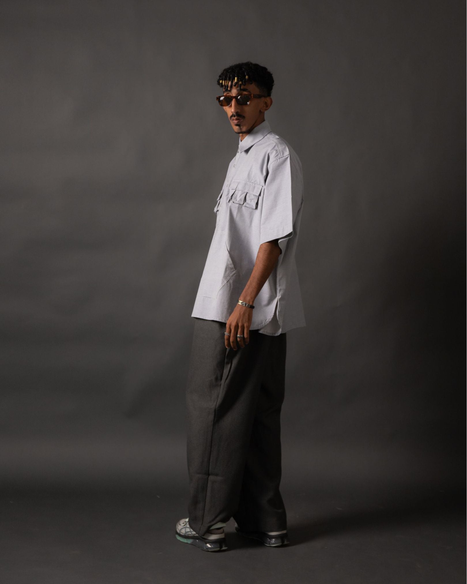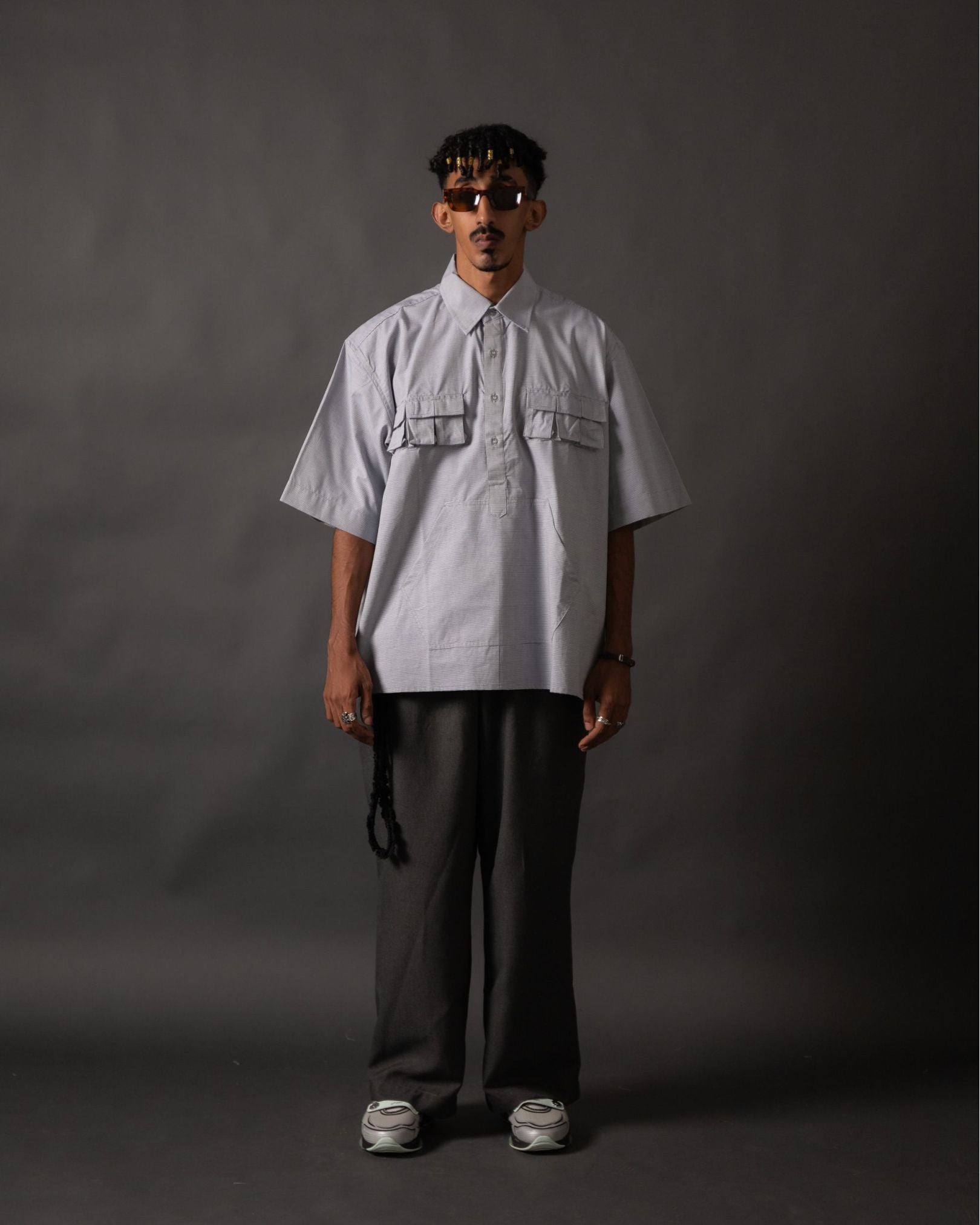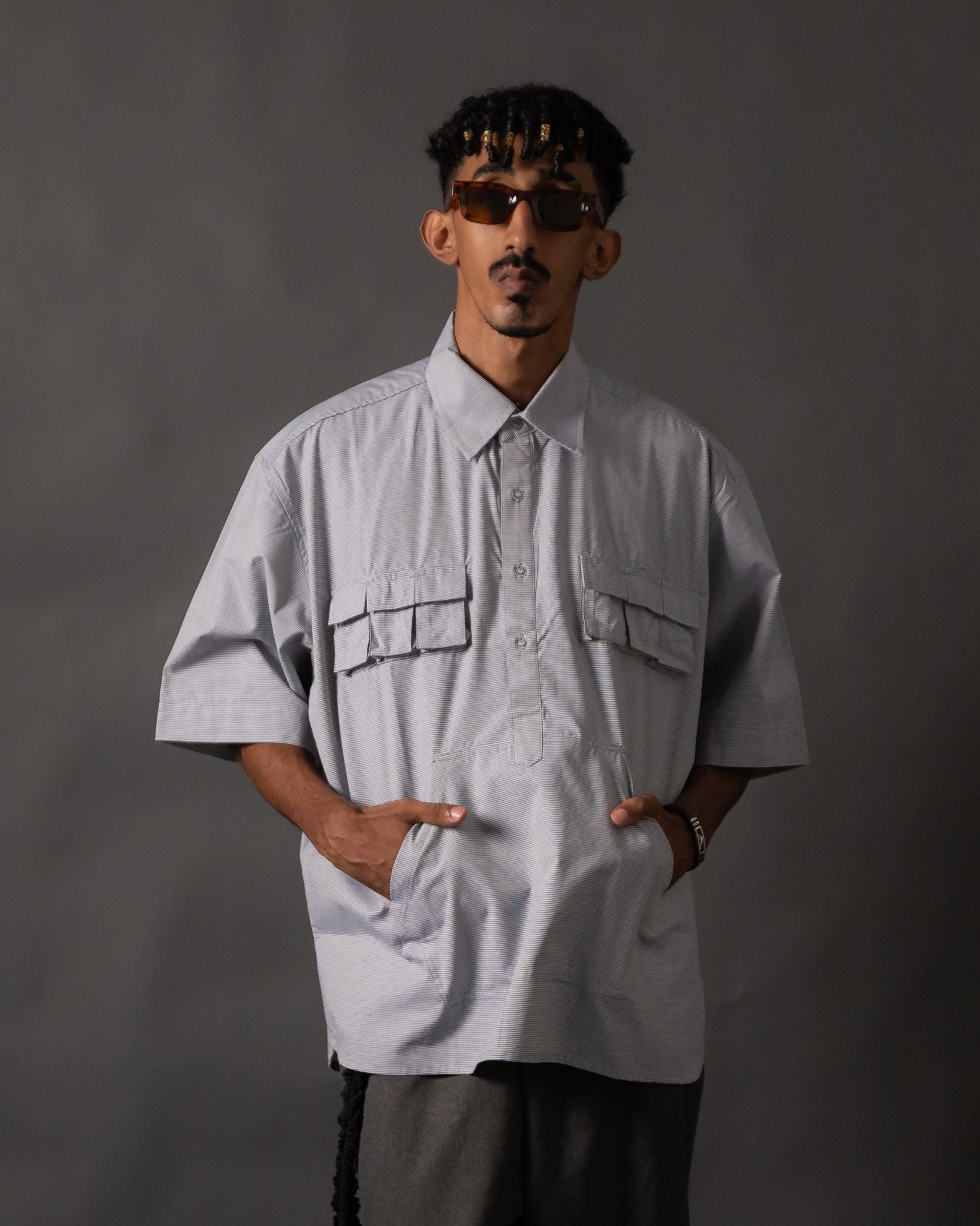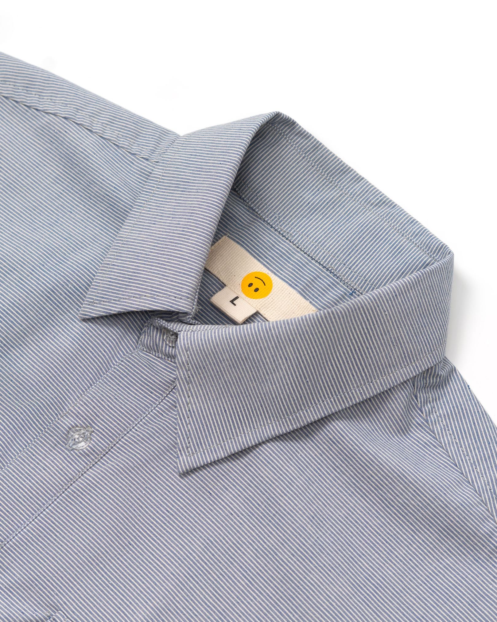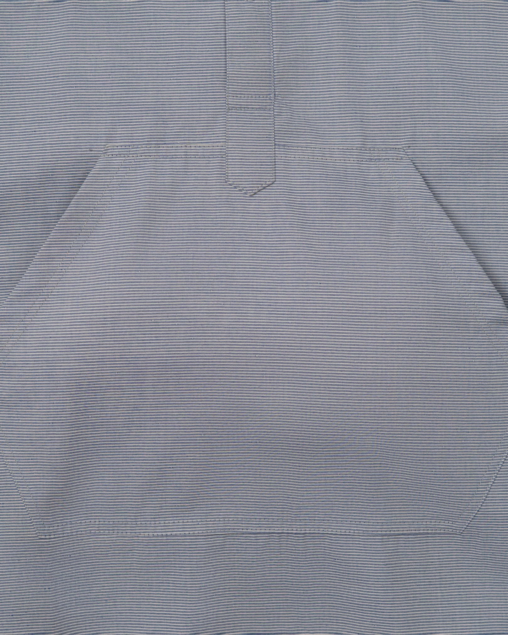 The Kangaroo Shirt Stripes Blue TNOI is a relaxed everyday essential designed for daily rotation, perfect for effortless casual wear and versatile warm‑weather styling. Cut in OAT’s oversized fit with a straight point collar and quarter button placket, it offers a laid‑back silhouette with thoughtful proportions. Made from breathable cotton with tonal stripe details, the shirt feels comfortable for all‑day wear. Functional mini flap pockets at the top and an oversized kangaroo pocket at the lower front add purposeful utility—perfect for weekend outings, warm days, and easy‑going styled rotation.