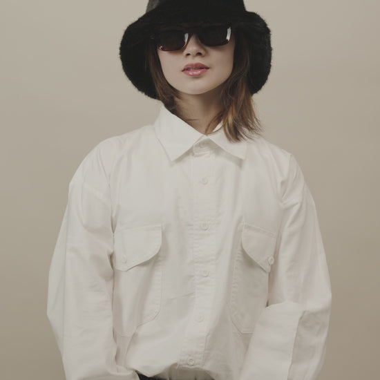 The Ledo Shirt L/S Oxford White is a refined everyday essential designed for daily rotation, perfect for versatile styling from casual to smart-casual. Cut in OAT’s boxy oversized fit, it offers a relaxed silhouette with structure from the straight point collar and horizontal back yoke. Made from cotton Oxford, the fabric gives a crisp feel with reliable wearability. Functional details like dual chest pockets with flap closures, barrel cuffs, and side slits with gusset reinforcement enhance utility, while a locker loop adds practical ease—perfect for layering or wearing on its own with quiet, thoughtful craftsmanship.