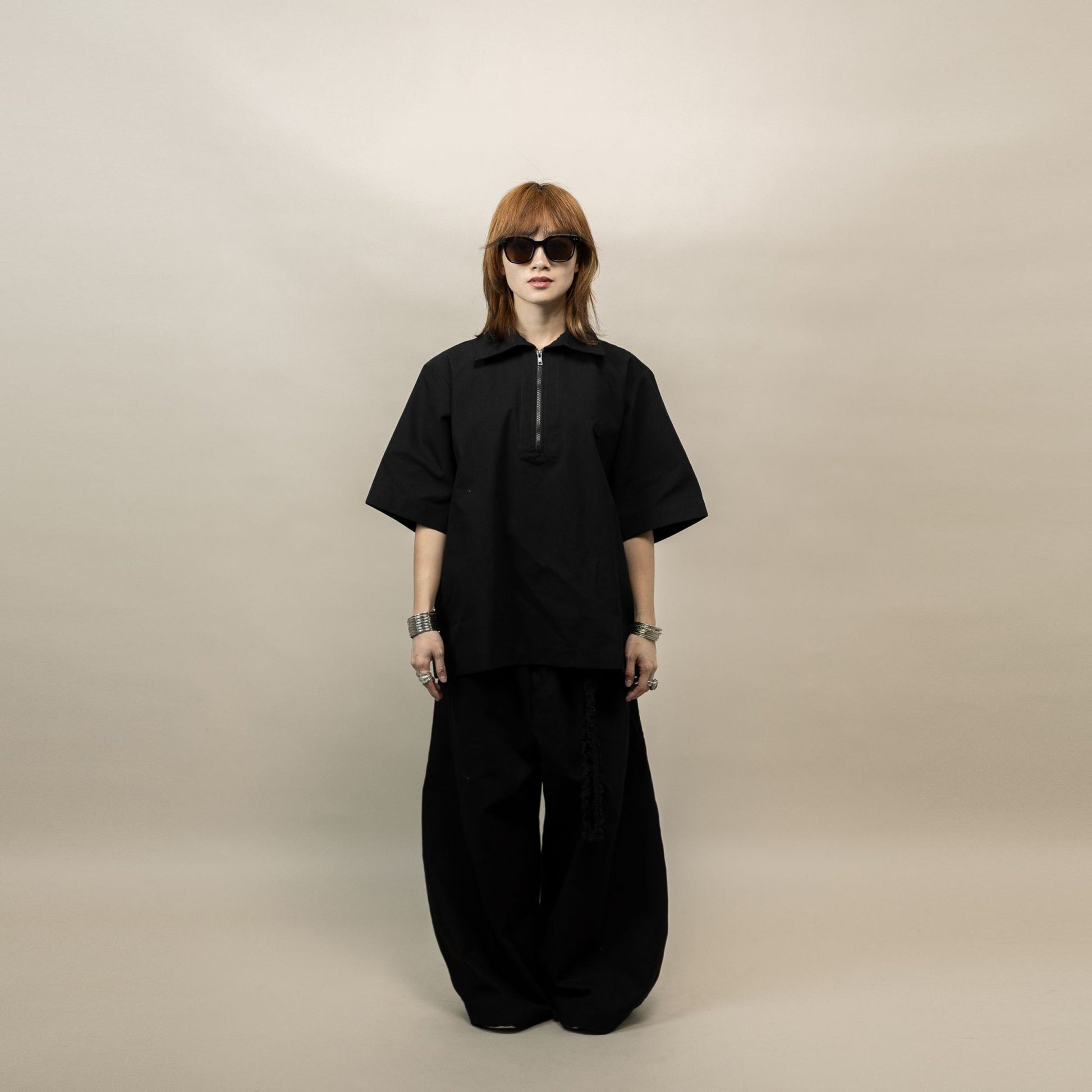 LEJA QUARTER ZIP SHIRT BLACK