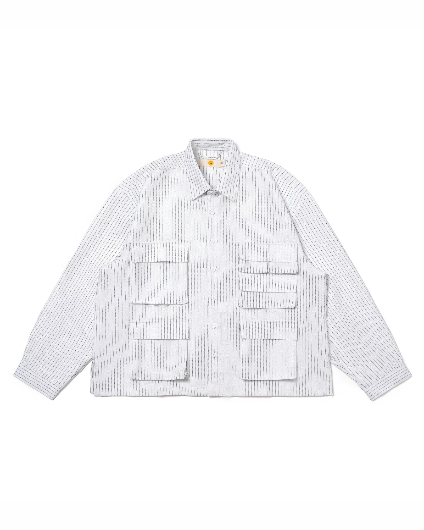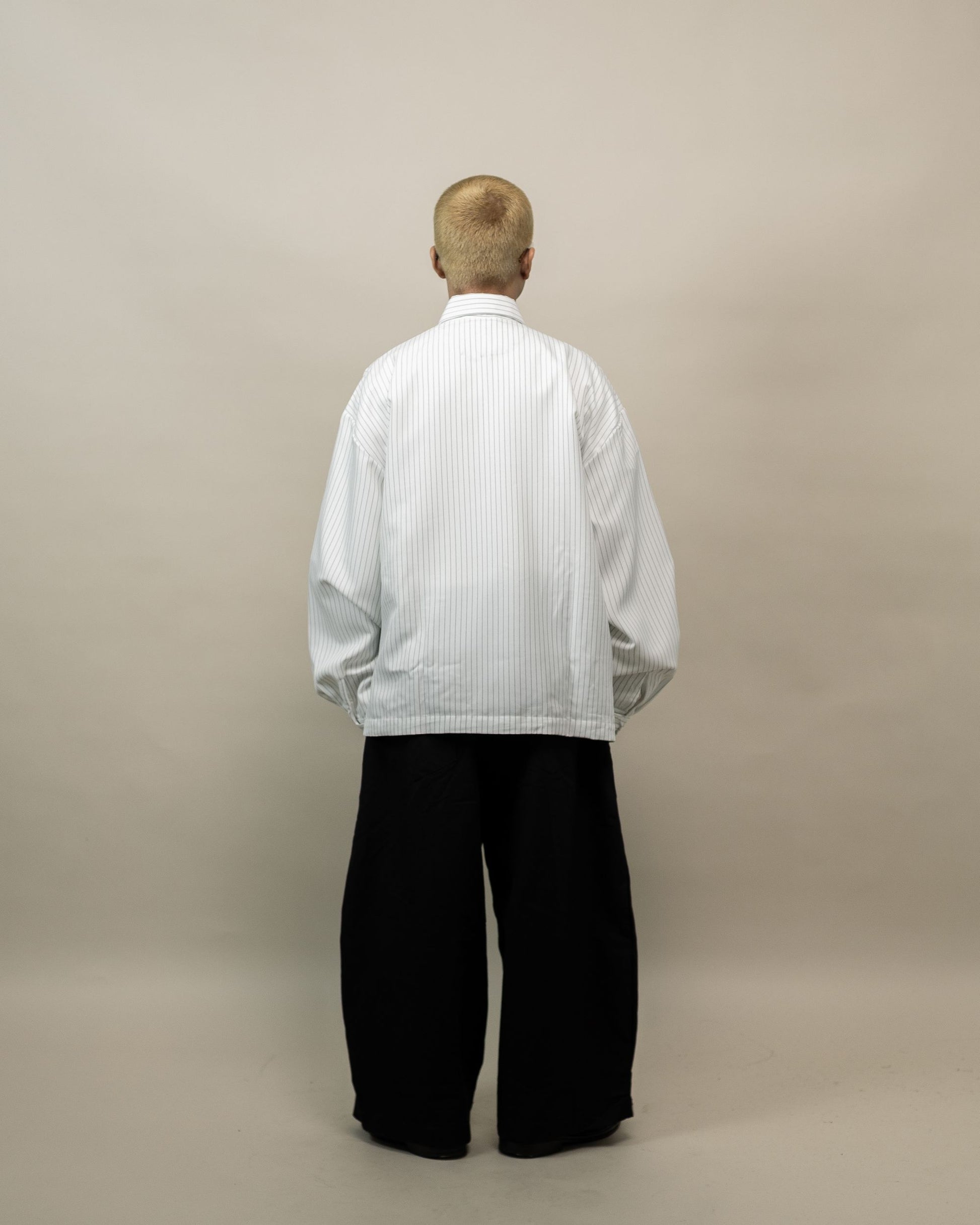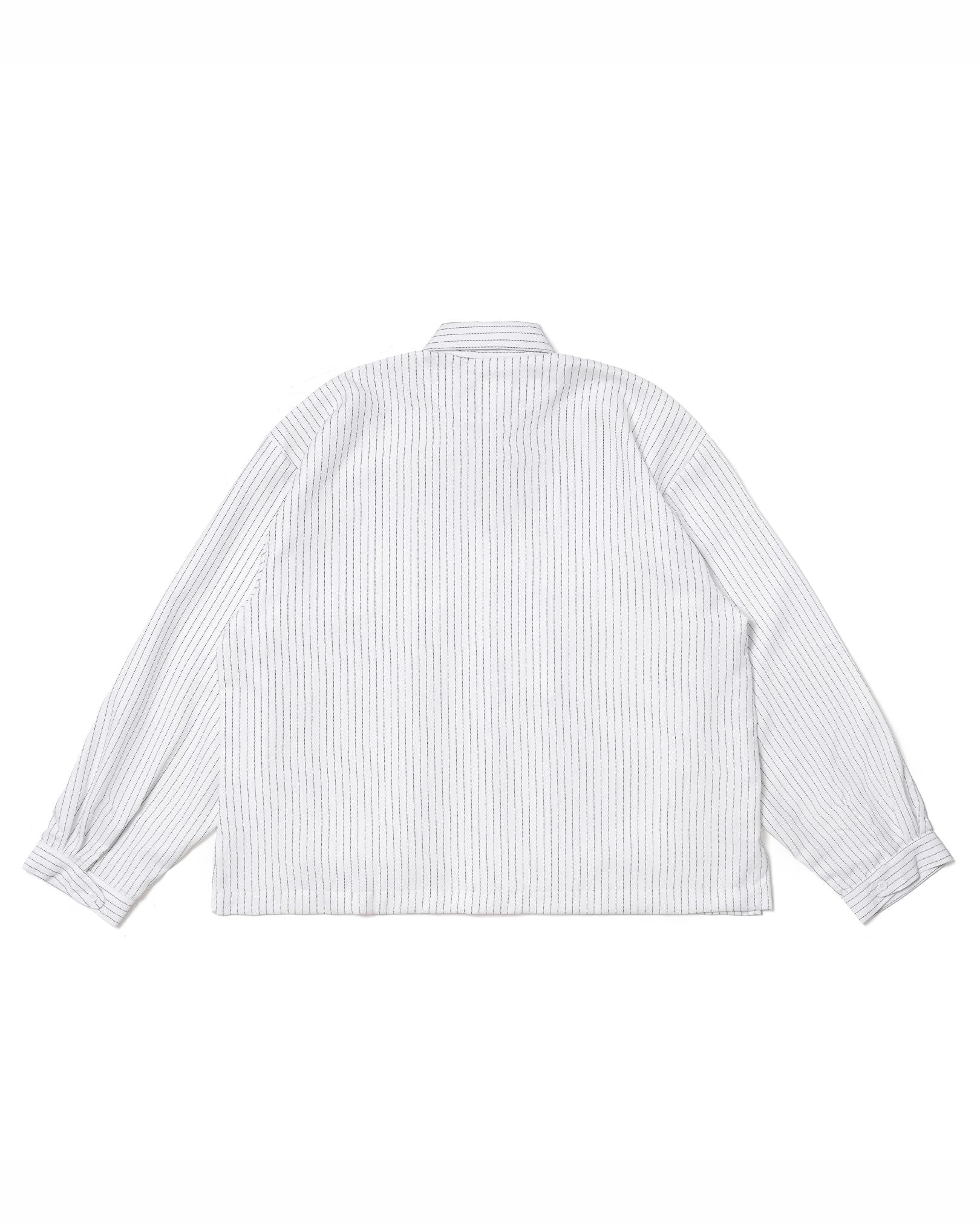 The Lepa Shirt L/S Semi Wool Stripes White is a versatile layering piece designed for daily rotation, perfect for elevated casual wear and transitional styling. Cut in OAT’s boxy oversized fit, it offers a relaxed silhouette with structure from the straight point collar with back button and half-moon back yoke. Made from semi-wool, the fabric delivers balanced warmth with a refined feel. Front utility pockets, barrel cuffs, and side slit openings add practical detail, finished with a locker loop—perfect for wearing on its own or layered with quiet, thoughtful character.