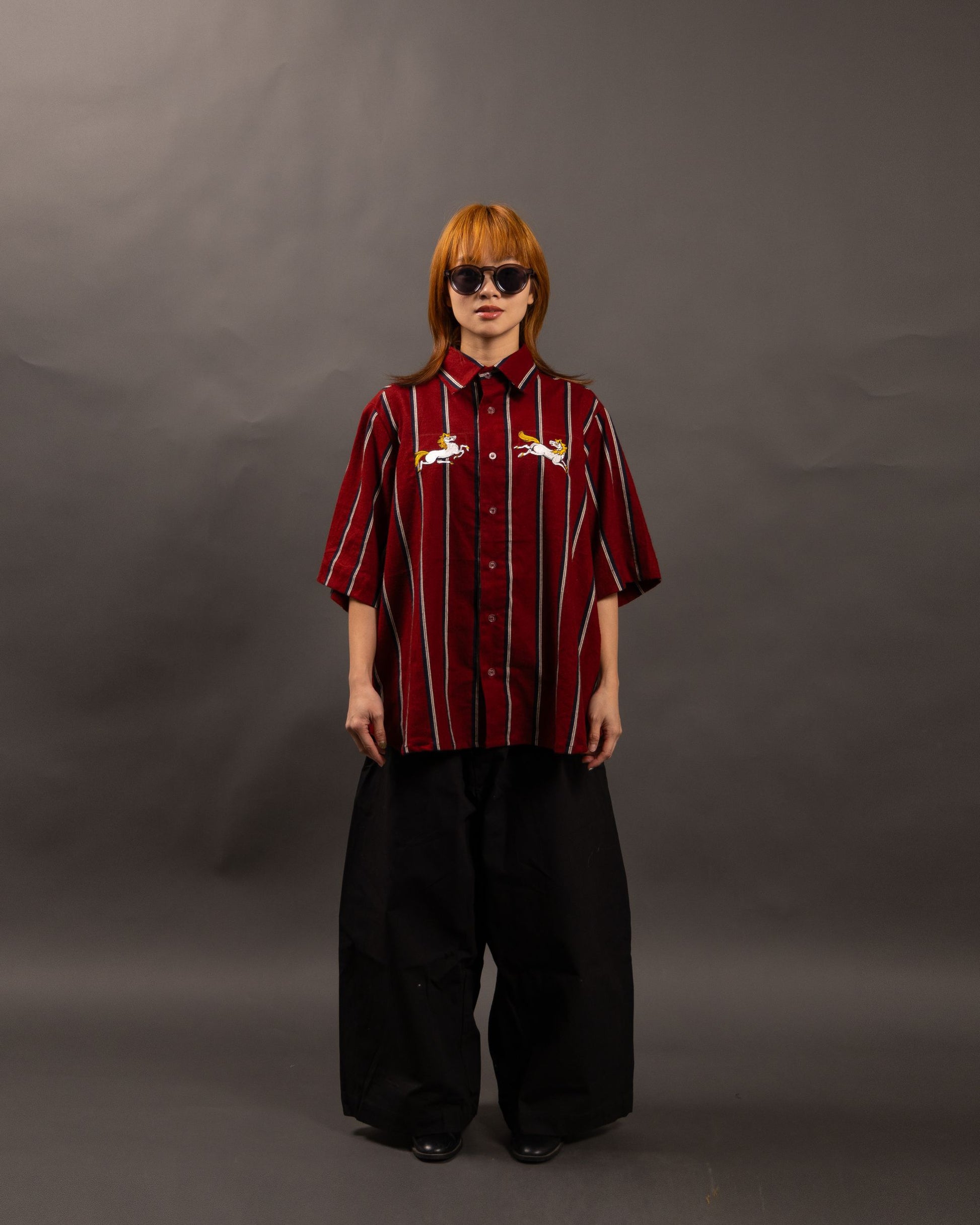 A vibrant centerpiece of the Year of the Horse Collection, the Nakano Shirt YOTH offers a bold, graphic interpretation of traditional shirting. Rendered in a striking red, black, and white palette, this piece is crafted from a breathable polycotton blend and features OAT’s signature oversized boxy fit for a relaxed yet structured silhouette. The design is elevated by intricate Year of the Horse embroidery on the torso and back, anchored by a tactile "Fire Horse" chenille motif that adds a layer of rich, artistic texture. With functional details like a straight point collar, a square chest pocket, and adjustable side vent openings for customizable styling, this shirt seamlessly merges modern street style with cultural storytelling.