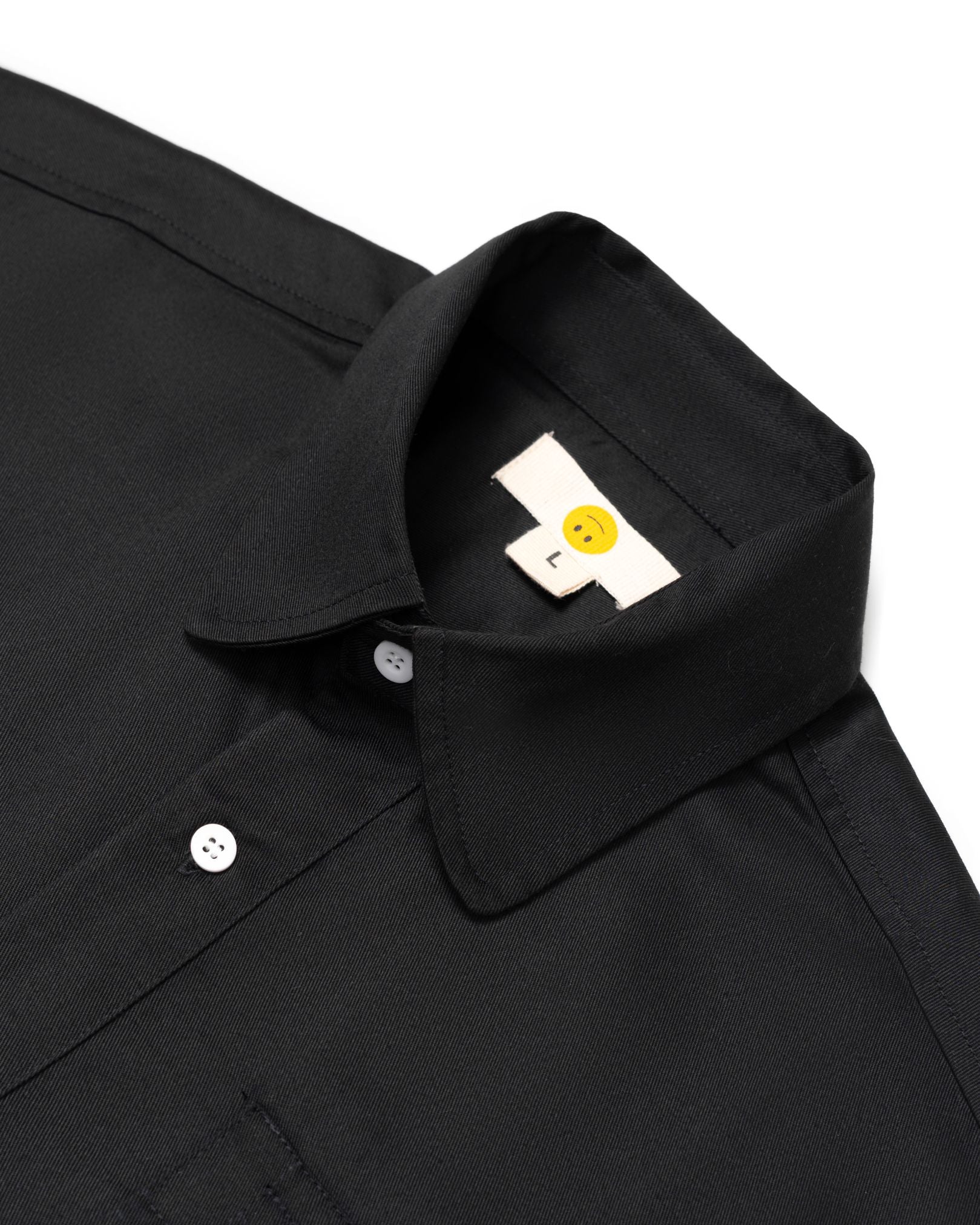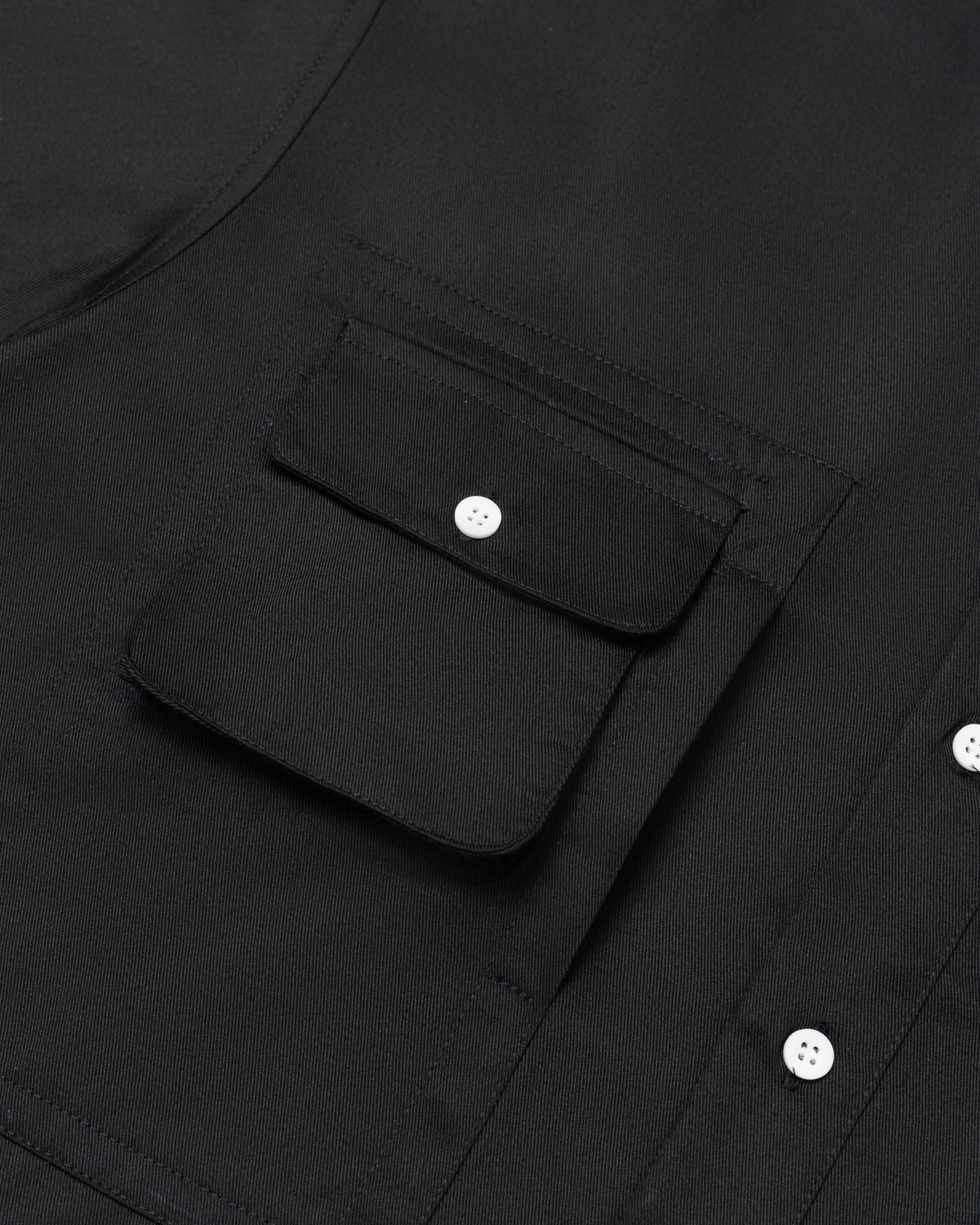 The Nomizu Shirt Black is a purposeful everyday essential designed for daily rotation, perfect for elevated casual wear and effortless layering. Cut in OAT’s oversized fit, it delivers a relaxed silhouette with thoughtful proportions. Made from cotton twill, the fabric feels structured yet comfortable for all-day wear. Functional detailing includes a two-pocket configuration with one hidden pocket and a hybrid straight point–club collar—perfect for adding subtle utility and quiet character to everyday outfits.