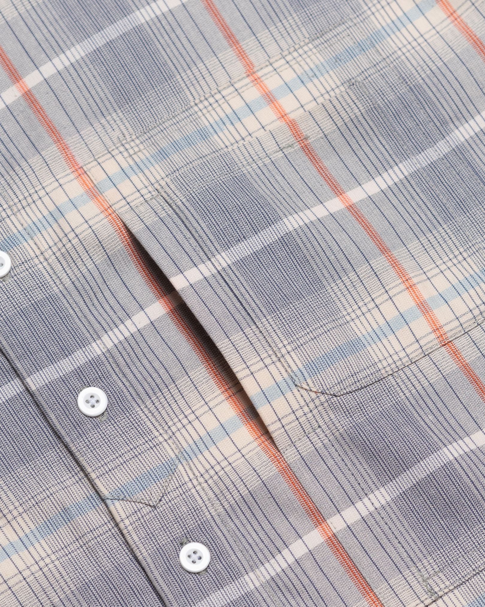 The Nomizu Shirt Pattern Cream & Blue is a purposeful everyday essential designed for daily rotation, perfect for elevated casual wear and effortless layering. Cut in OAT’s oversized fit, it offers a relaxed silhouette with thoughtful proportions. Made from cotton yarn-dyed fabric, the shirt feels soft with subtle texture for all-day comfort. Functional detailing includes two visible pockets and two hidden pockets, plus a hybrid straight point–club collar—perfect for adding quiet utility and character to everyday outfits.