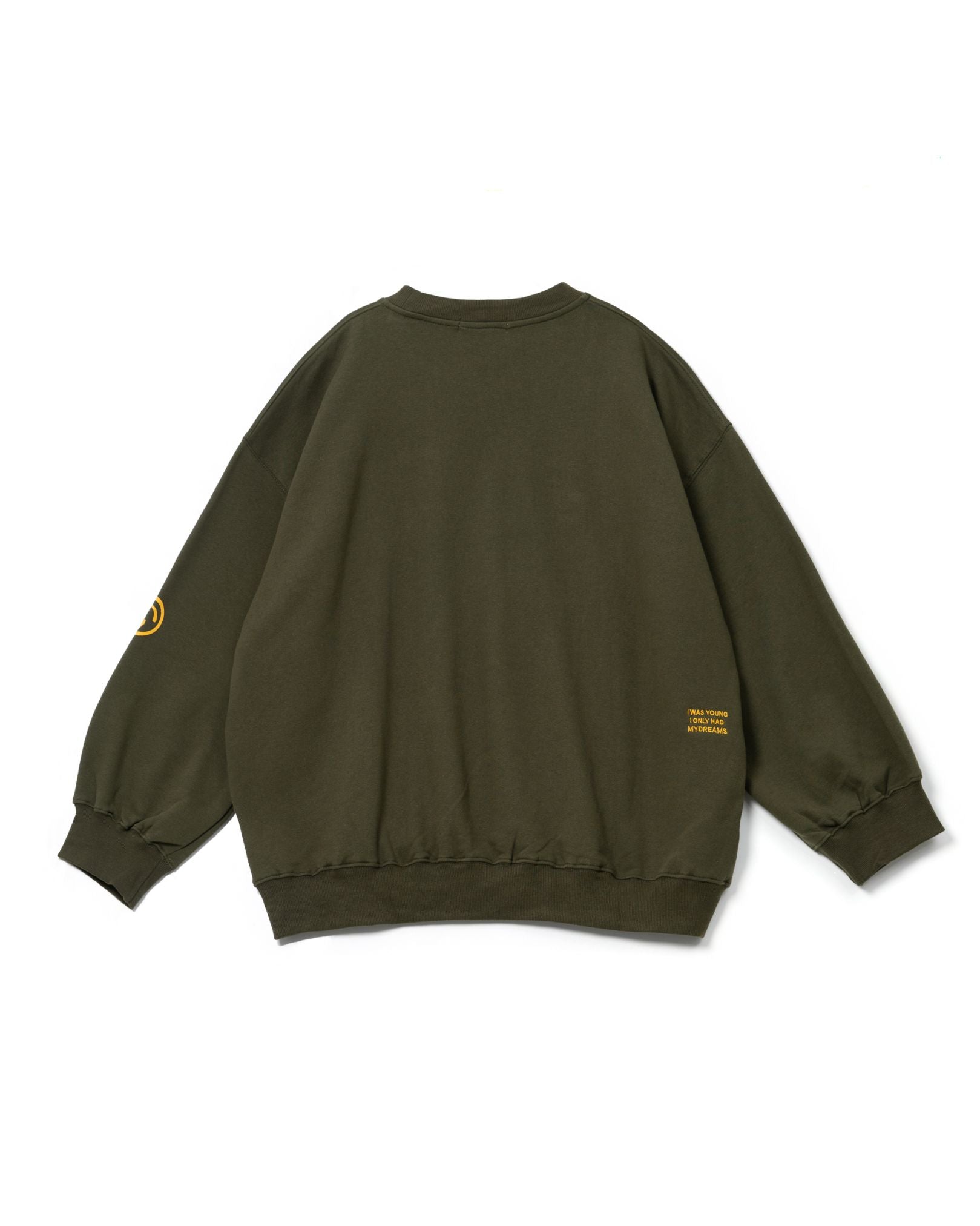 The Operator Sweatshirt TNOI is a standout everyday sweatshirt designed for daily rotation, perfect for those who value expressive comfort and quiet attitude. Made from heavyweight cotton fleece, it offers substantial warmth and a relaxed feel with intentional weight and hand. Signature graphic chenille and machined embroidery on the chest, paired with screen-printed details and “I WAS YOUNG I ONLY HAD MY DREAMS” machined embroidery on the lower back, bring layered visual character. Additional touches like the OAT smile screen print on the elbow and 3D OAT Sunflower crochet on the right sleeve complete the design—perfect for creative outings, weekend wear, and styled comfort with quiet personality.