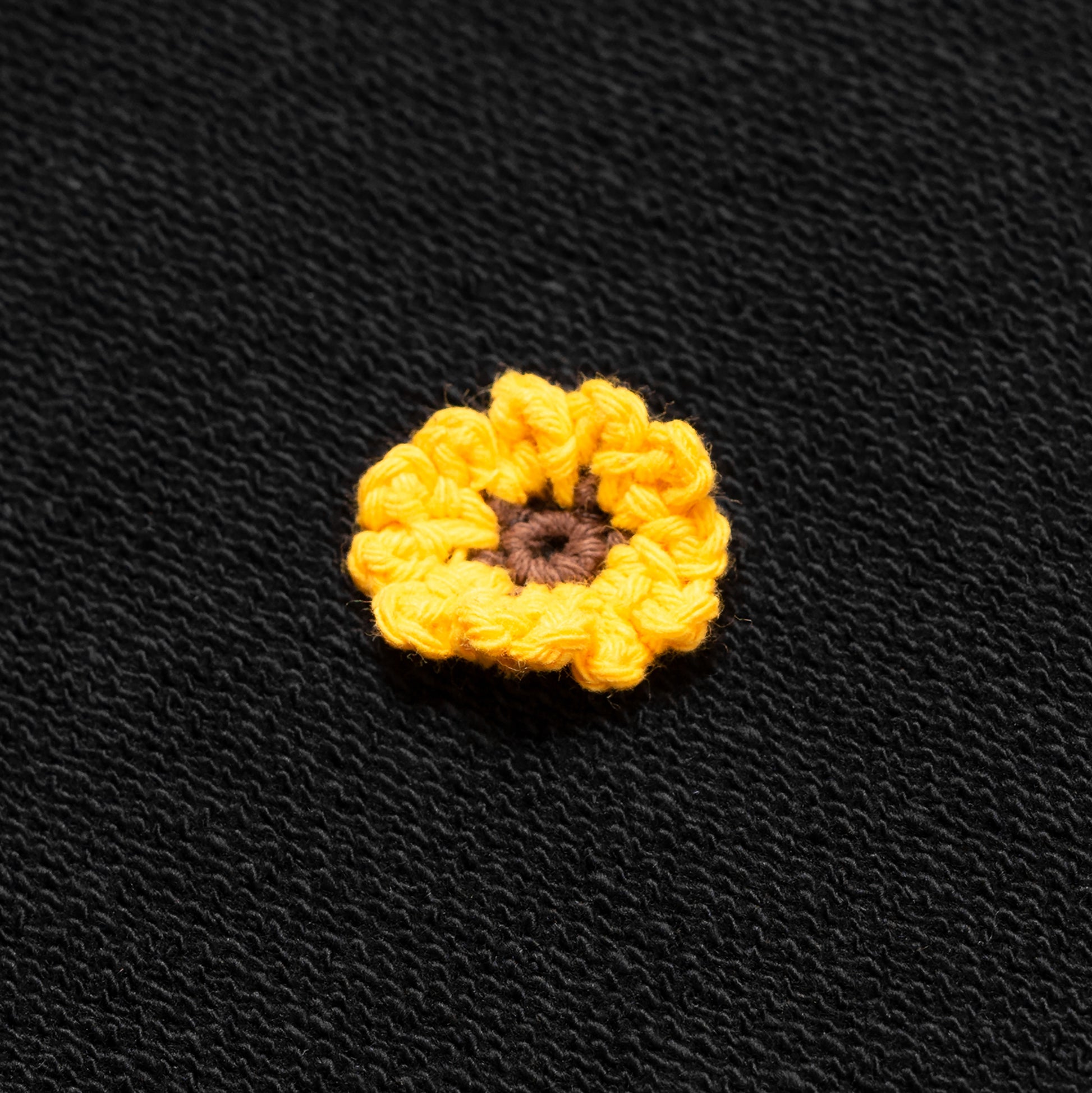 • Yellow 3D OAT ‘Sunflower’ crochet embroidery on left torso