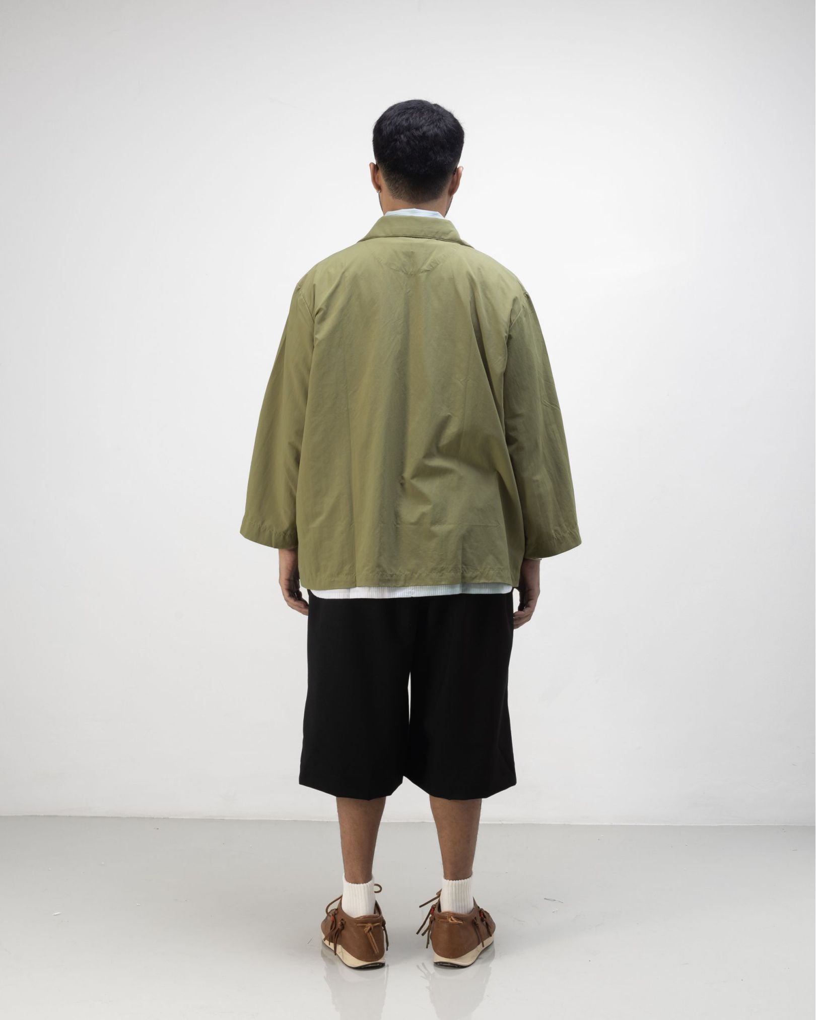 The Saba Overshirt Light Olive is a lightweight, breathable everyday layer designed for daily rotation, perfect for relaxed casual wear and easy styling. Cut in OAT’s boxy oversized fit with a straight point collar and half-moon back yoke, it offers a relaxed silhouette with subtle structure. Made from polyamide, the fabric feels airy and dependable for all-day comfort. Functional details include a chest pocket with button closure and yellow 3D OAT ‘Sunflower’ crochet embroidery on both lower sleeves—perfect for adding quiet crafted character to everyday outfits.