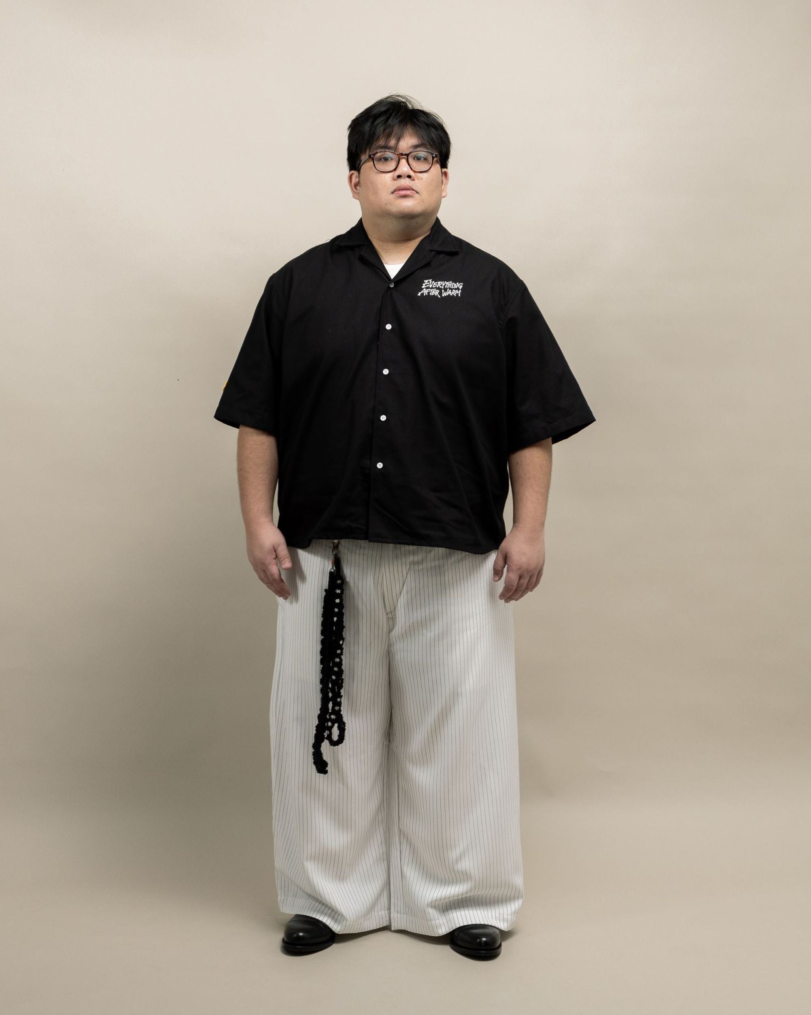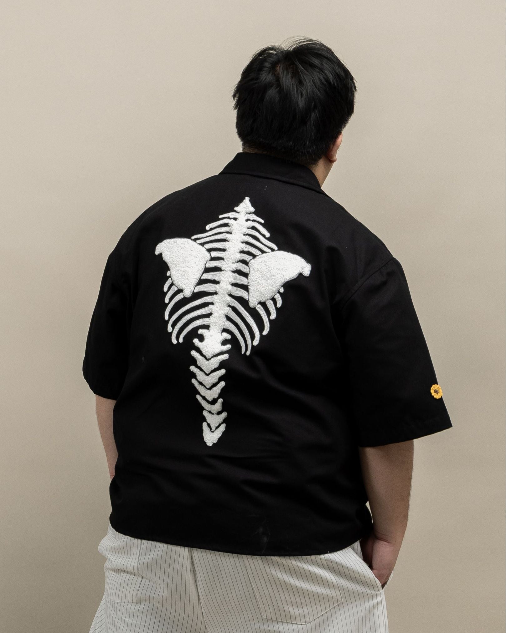 The Shinkoiwa Shirt Black is a standout everyday piece designed for daily rotation, perfect for casual and elevated off-duty styling. Cut in OAT’s oversized fit with an open collar, it offers a relaxed silhouette with effortless layering. Made from cotton, the fabric feels comfortable and breathable for all-day wear. Signature details include ‘Everything After Warm’ embroidery on the left torso, ‘Ribs’ chenille embroidery on the back, and yellow 3D OAT ‘Sunflower’ crochet embroidery on the right sleeve—perfect for adding crafted character with comfort and thoughtful design.
