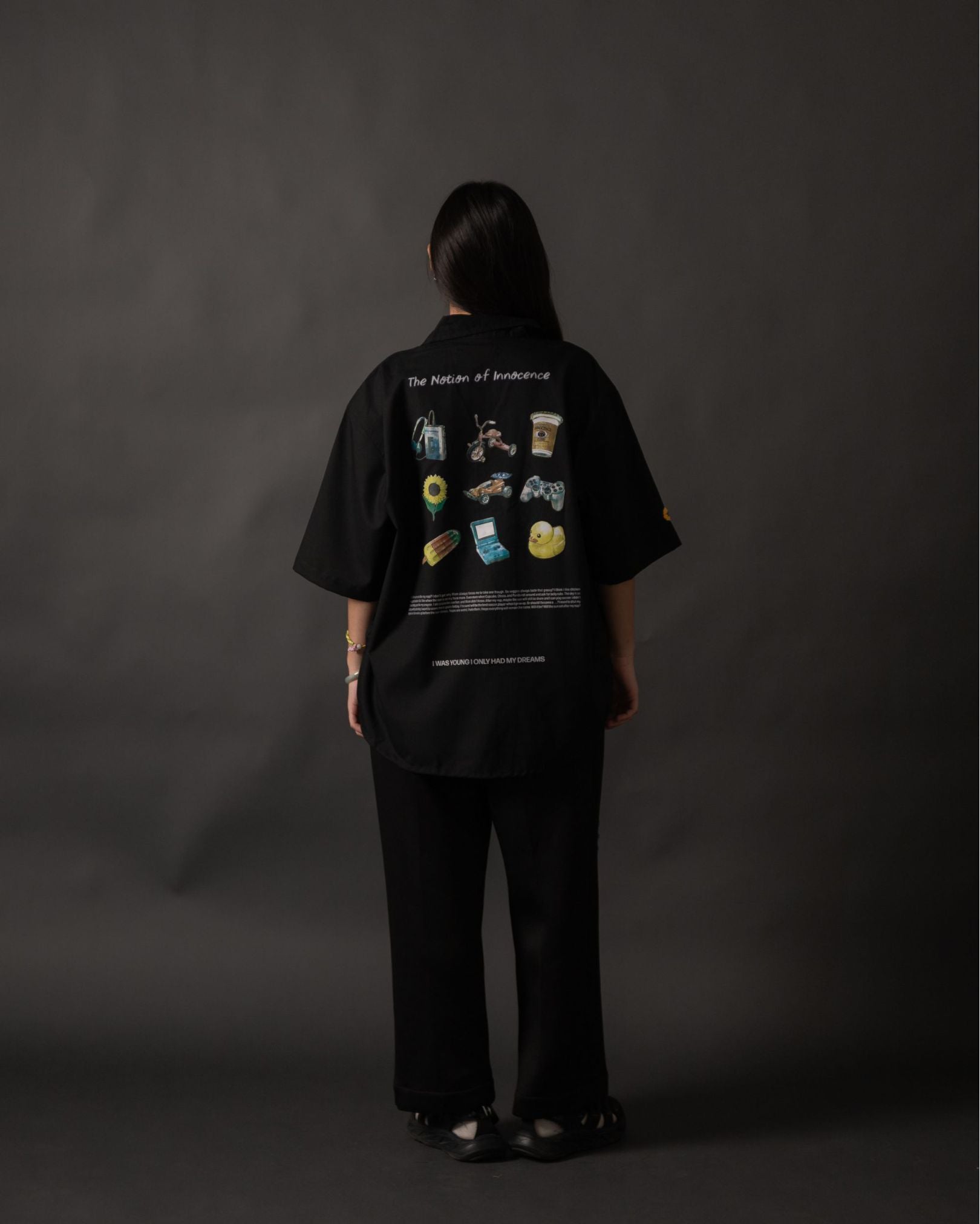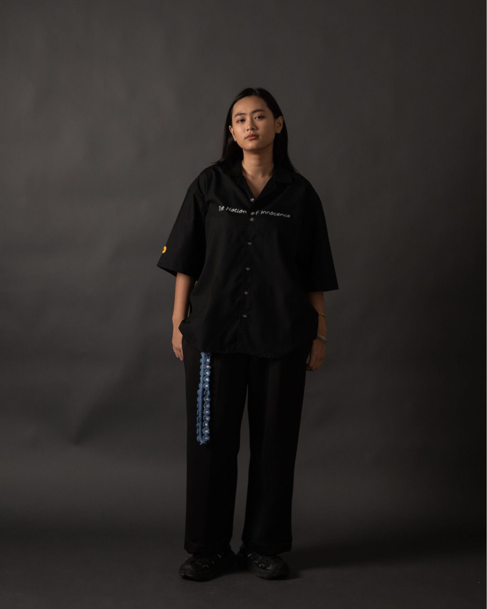 The Shinkoiwa Shirt Black TNOI is a standout everyday piece designed for daily rotation, perfect for those who value expressive comfort and quiet attitude. Cut in OAT’s oversized fit with an open collar, it offers a relaxed silhouette with effortless layering. Made from cotton, the fabric feels breathable and comfortable for all-day wear. Signature details include embroidered ‘Everything After Warm’ on the left torso, ‘Ribs’ chenille embroidery on the back, and yellow 3D OAT ‘Sunflower’ crochet on the right sleeve—perfect for creative days, casual outings, and styled comfort with quiet character.