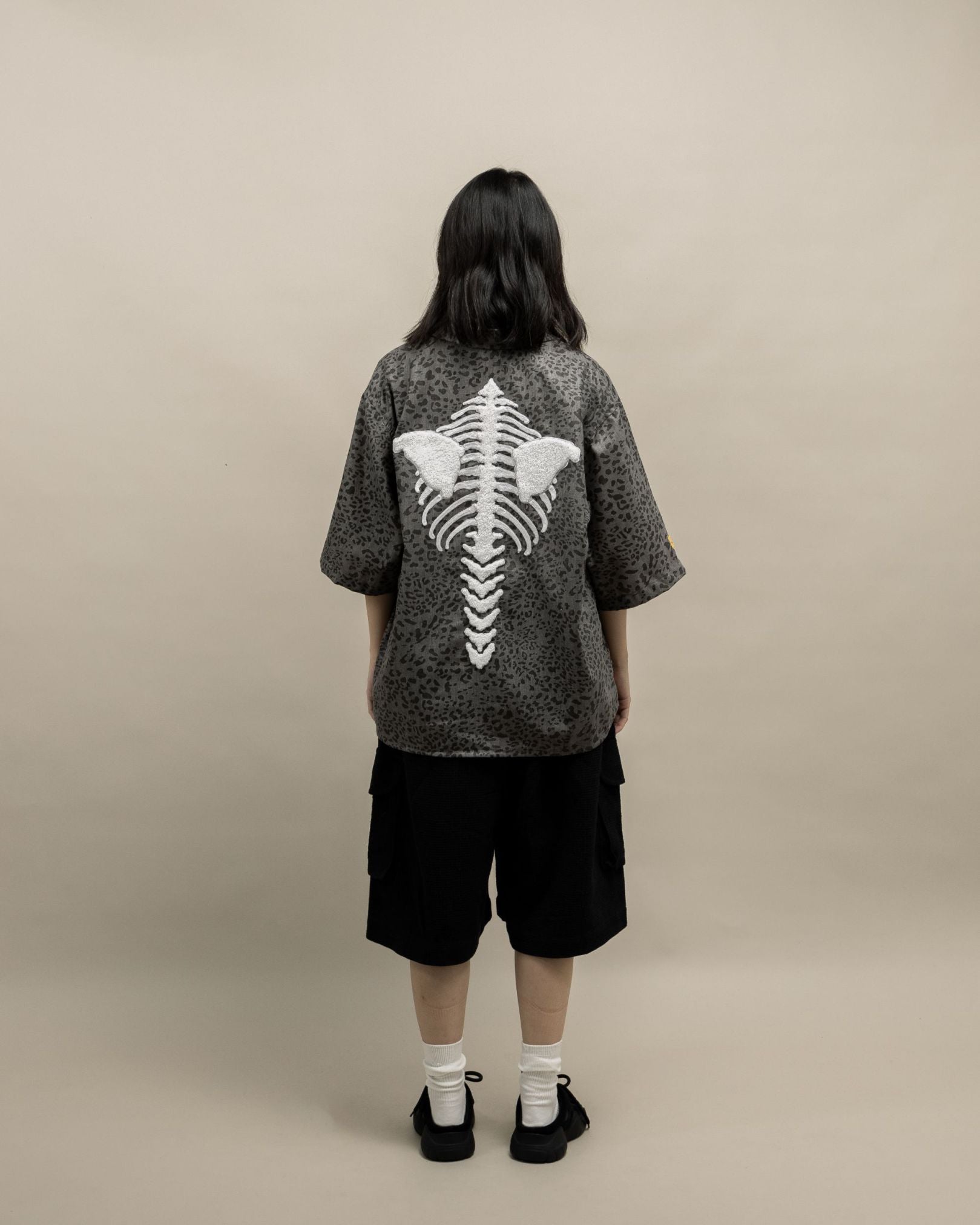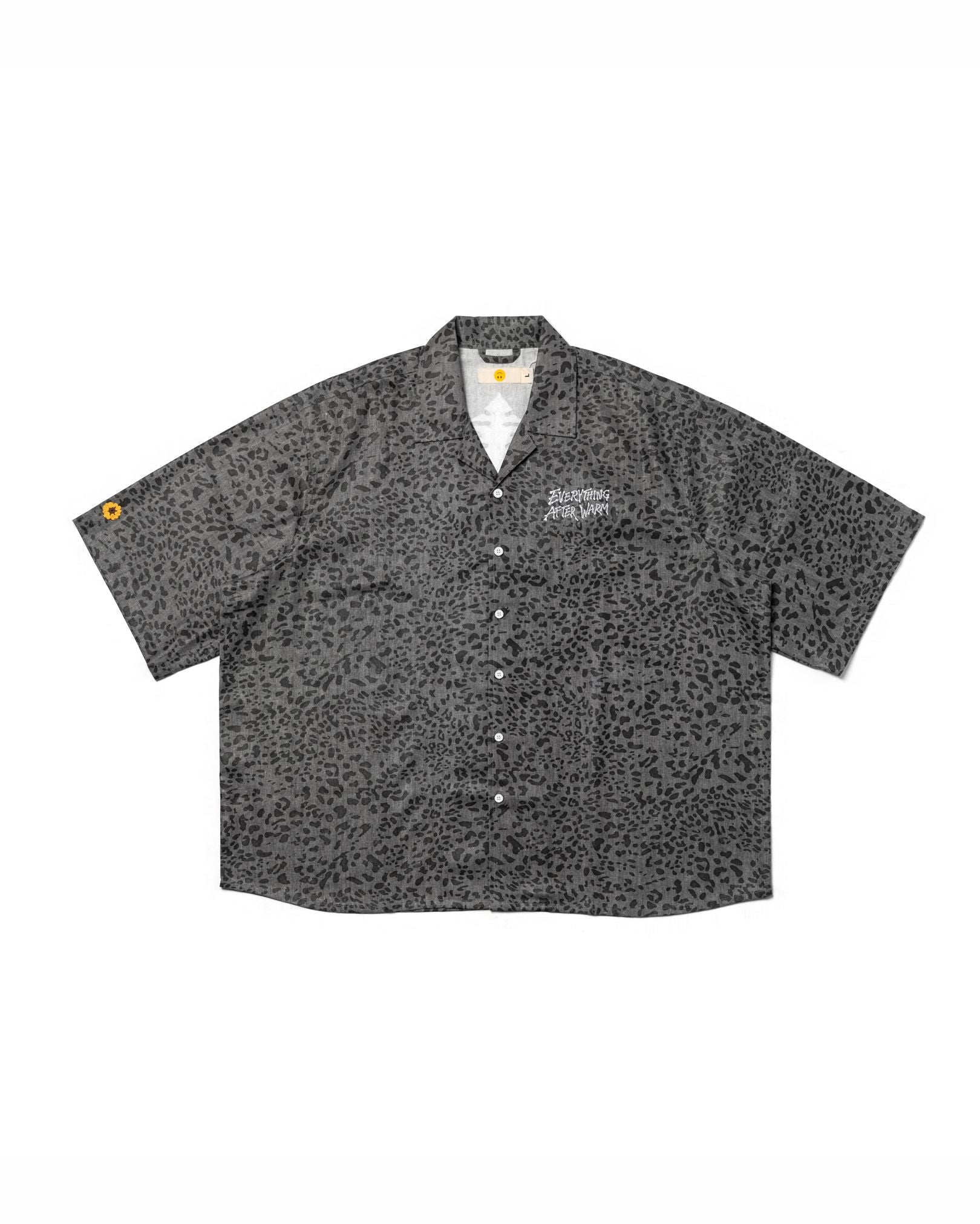 The Shinkoiwa Shirt Cheetah Pattern Gray/Black is a standout everyday piece designed for daily rotation, perfect for effortless casual wear with character. Cut in OAT’s oversized fit with an open collar, it offers a relaxed silhouette that layers easily. Made from printed cotton, the fabric feels comfortable and breathable for all-day wear. Signature details include ‘Everything After Warm’ embroidery on the left torso, ‘Ribs’ chenille embroidery on the back, and yellow 3D OAT ‘Sunflower’ crochet on the right sleeve—perfect for adding crafted detail to everyday outfits with comfort and quiet attitude.