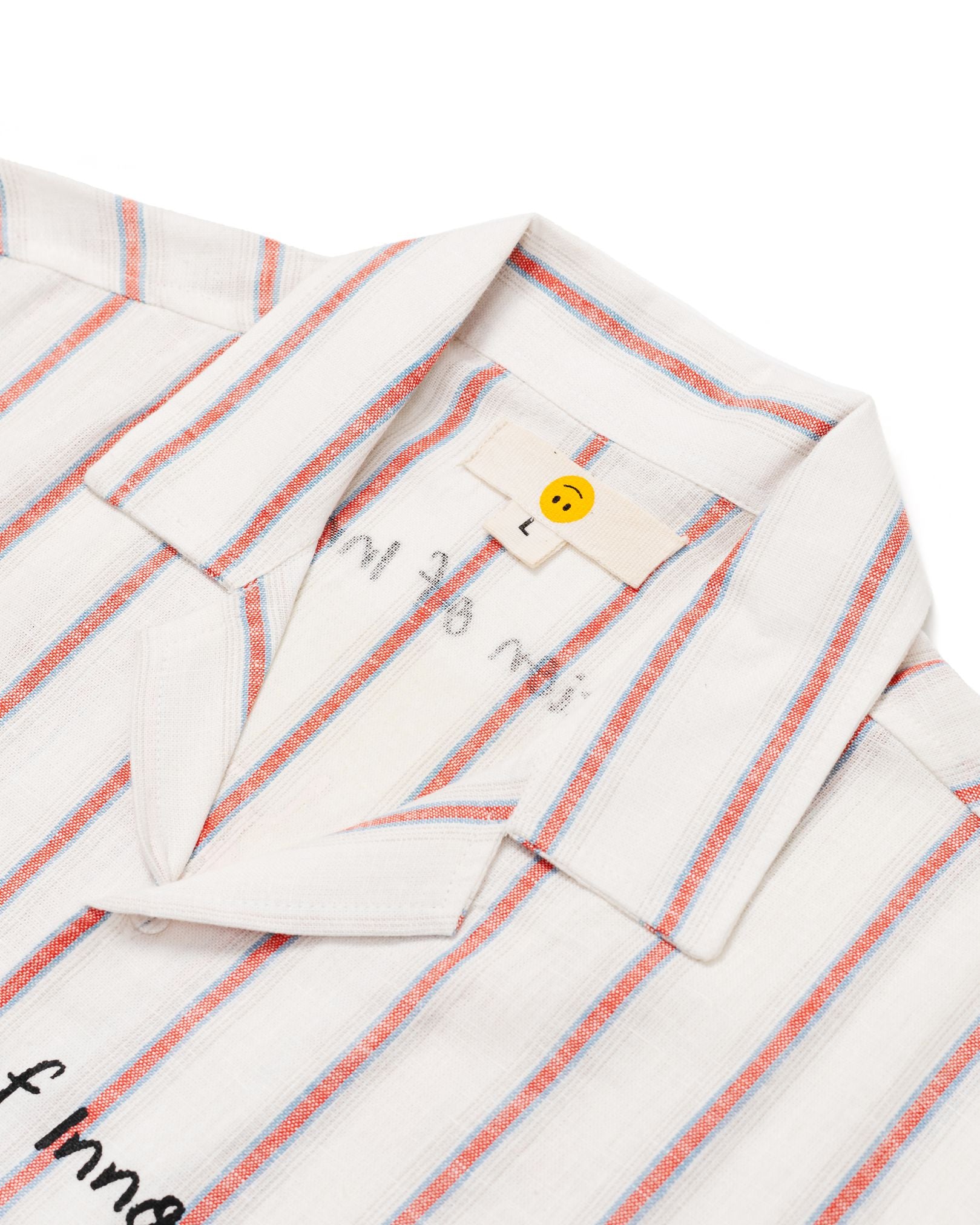 The Shinkoiwa Shirt Linen Stripes TNOI is a relaxed everyday essential designed for daily rotation, perfect for warm‑weather wear and effortless layering. Cut in OAT’s oversized fit with an open collar, it offers a breezy silhouette with intentional proportions. Made from linen‑blend fabric with subtle stripe detail, the shirt feels breathable and comfortable for all‑day wear. Signature embroidery elements—including ‘Everything After Warm’ on the left torso, ‘Ribs’ chenille on the back, and yellow 3D OAT ‘Sunflower’ crochet on the right sleeve—add crafted character without excess—perfect for warm days, casual outings, and easy‑going styled rotation.