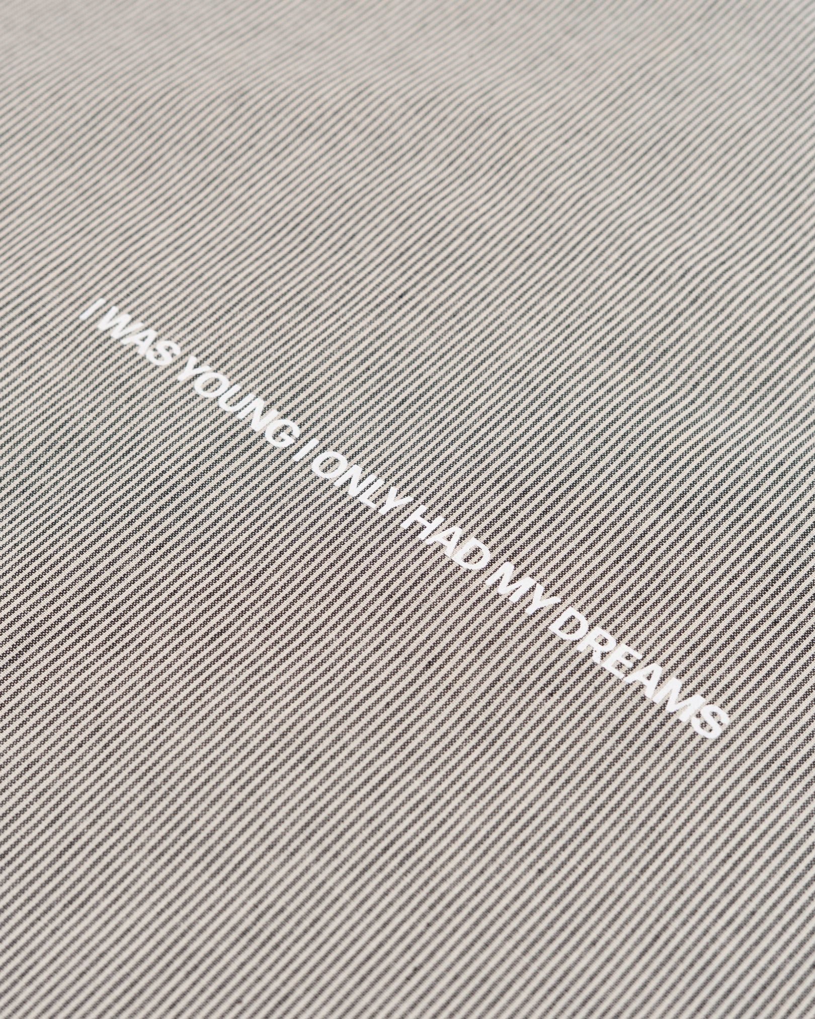 • ‘I WAS YOUNG I ONLY HAD MY DREAMS’ screen printed on the lower back