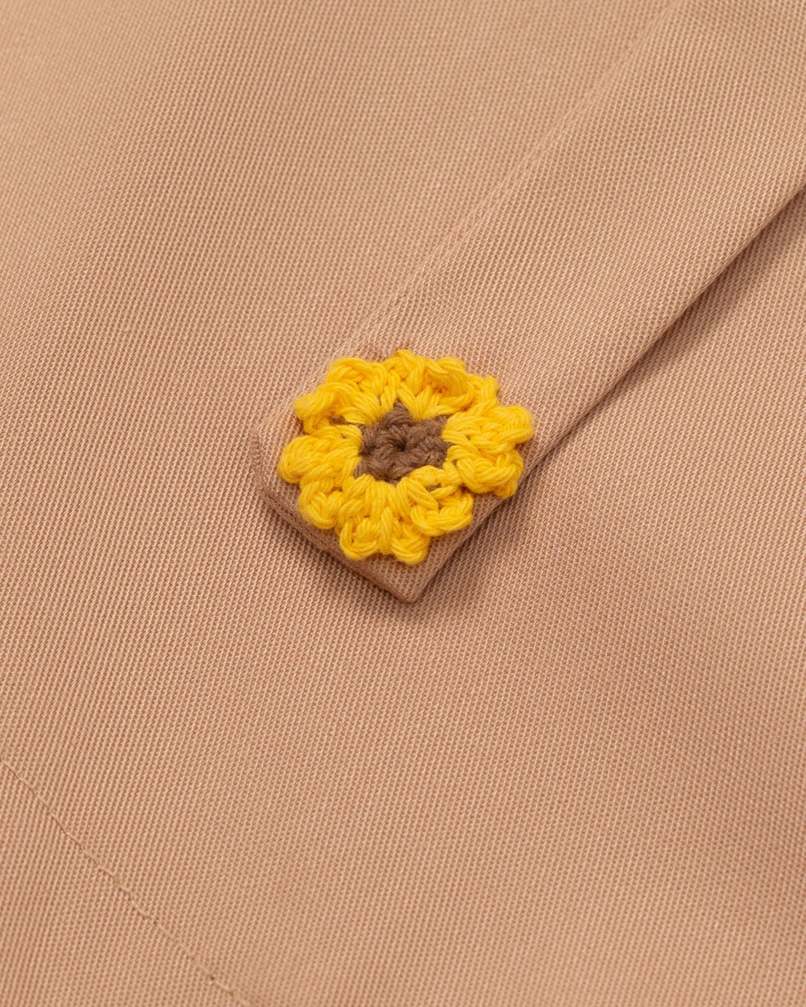 • Yellow 3D OAT ‘Sunflower’ crochet embroidery on the Hakama Himo